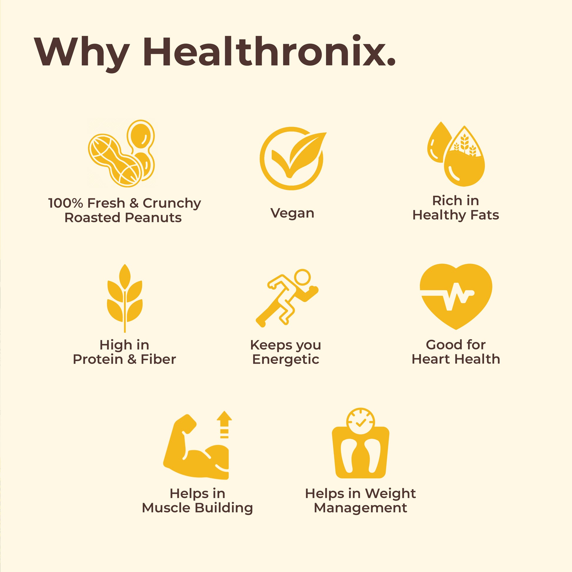 Healthronix Chocolate Smooth is a melt-in-mouth, chocolatey delight made for chocolate lovers blending roasted peanuts with rich dark chocolate for indulgence without compromise. Packed with protein and healthy fats, it fuels gym-goers, fitness enthusiasts, women, mothers, kids, and families. Enjoy it as a pre-workout or post-workout snack, a midday energy boost, a tiffin box treat, or even a late-night indulgence. Spread on toast, swirl into smoothies, or stir into oats and recipes for a wholesome, chocolaty experience trulyHealth for All.