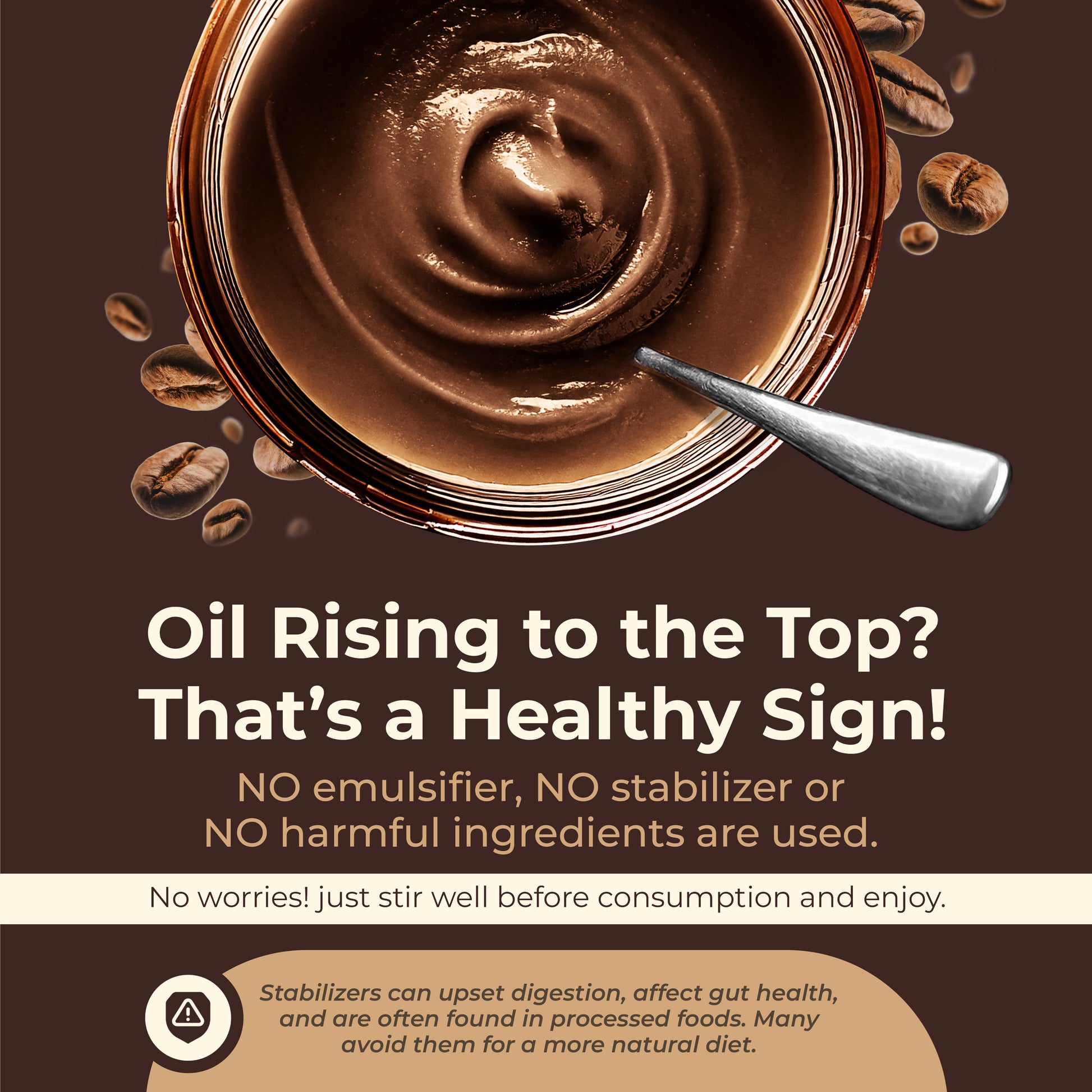 Just like desi ghee, a thin layer of oil rising to the top is a sign of purity — a mark of real, natural peanut butter with no stabilisers or emulsifiers. Simply stir before use; it’s pure, nutritious, and perfectly safe.