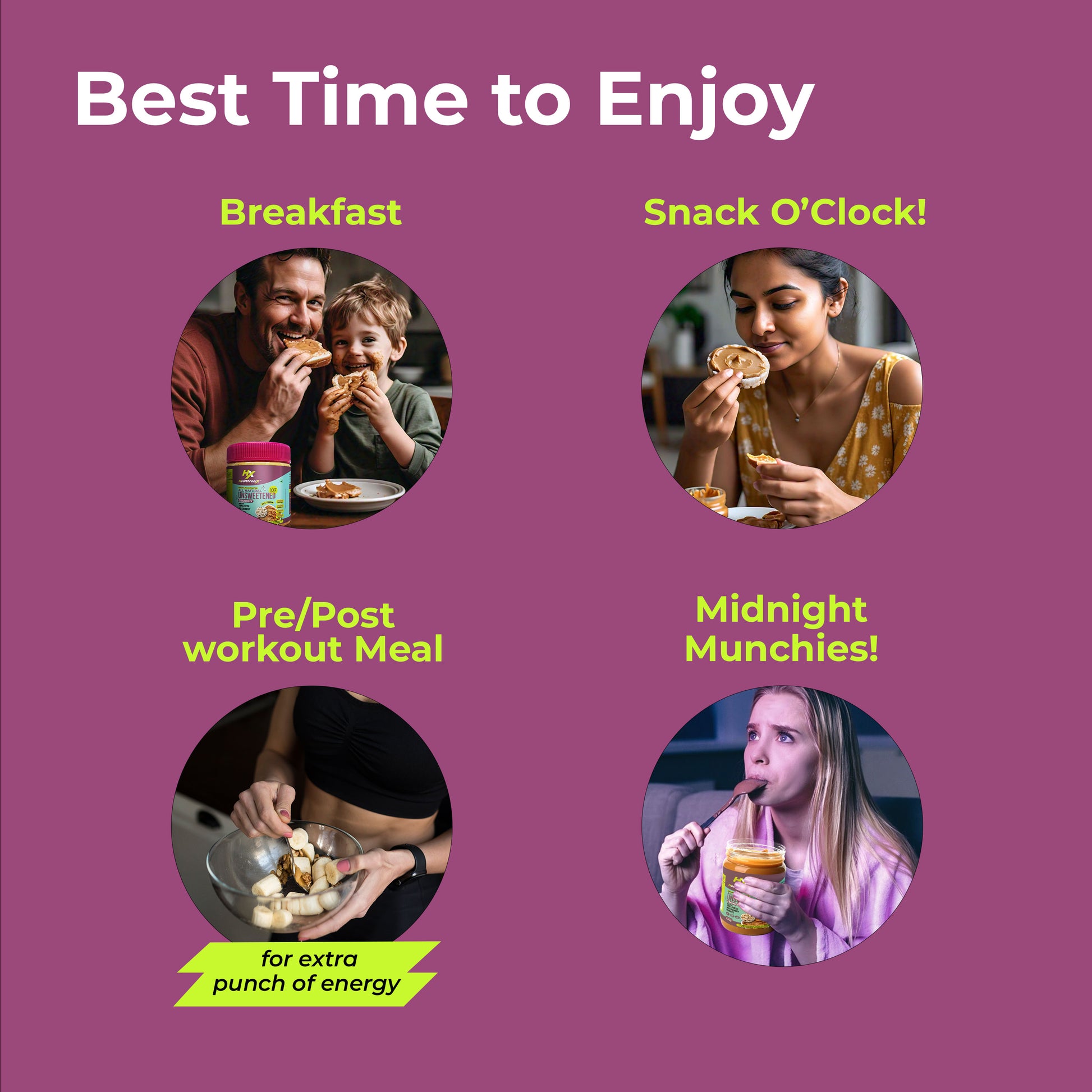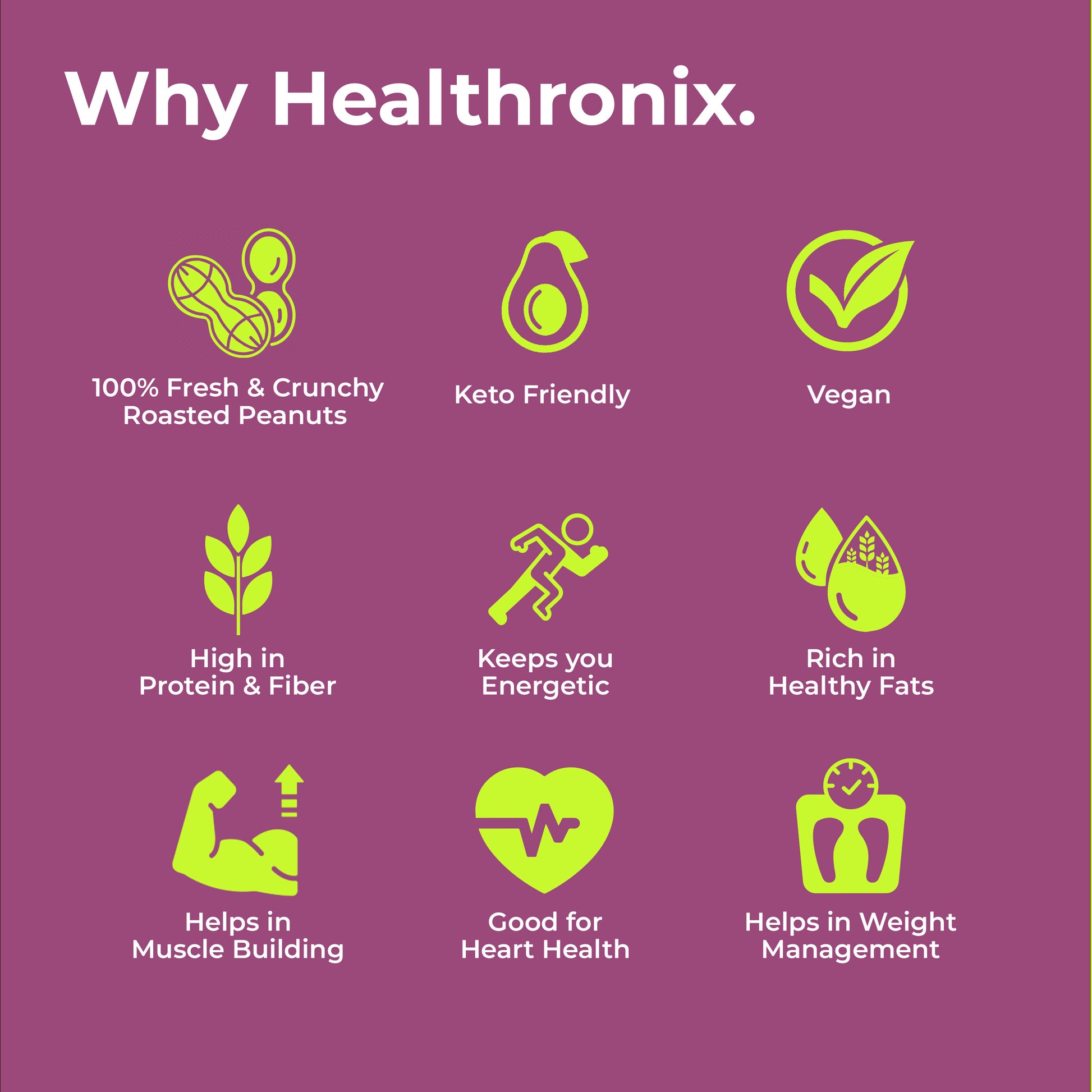 Healthronix Unsweetened Smooth is peanut butter in its purest, most wholesome form — made from 100% roasted peanuts with a melt-in-mouth texture and rich roasted aroma. Packed with natural protein and healthy fats, it fuels gym-goers, fitness enthusiasts, women, mothers, kids, and families. Enjoy it as a pre-workout or post-workout energiser, a midday snack, a tiffin box treat, or even for late-night cravings. Spread on toast, swirl into smoothies, or stir into oats and recipes for a simple, protein-rich delight — truly Health for All.