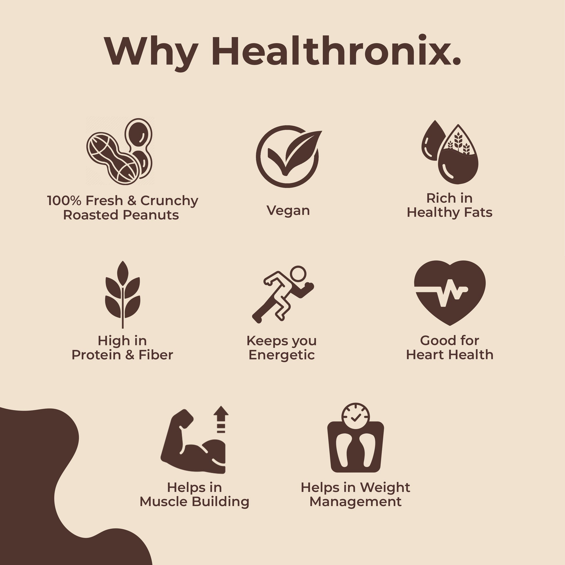 Rich in natural protein and healthy fats, it’s perfect as a pre-workout or post-workout energiser, a midday snack, a tiffin box addition, or a late-night treat. Spread on toast, stir into smoothies, mix into oats or pancakes, or enjoy straight wholesome, protein-rich nutrition for every member of the family, because Healthronix is Health for All.